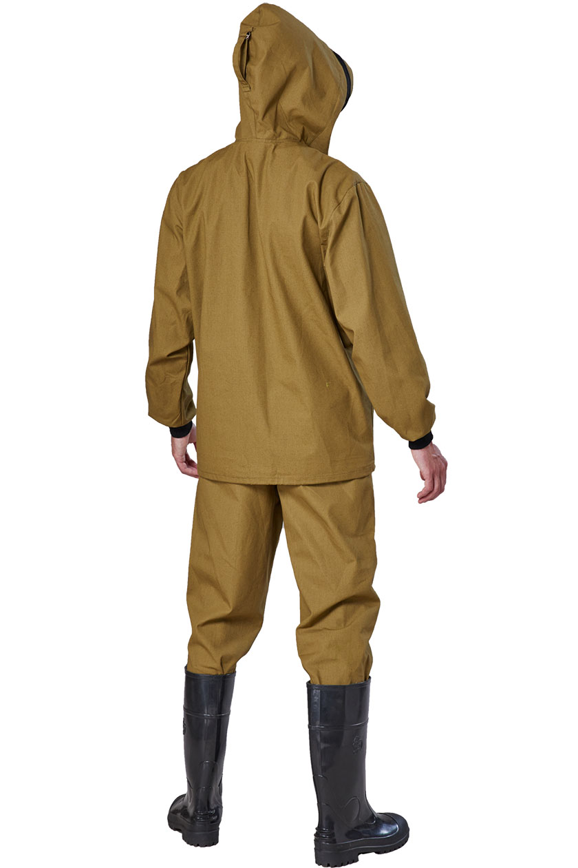 ➠ Куртка прямого силуэта с отрезными кокетками полочки, с капюшоном сложной конструкции, исключающей проникновение насекомых под одежду. Капюшон с противомоскитной сеткой. Низ куртки стягивается эластичным шнуром с фиксатором. Рукава втачные, с трикотажными манжетами-напульсниками. Полочка с накладным карманом с клапаном. В шве притачивания капюшона к полочке выполнен внутренний карман для противомоскитной сетки.