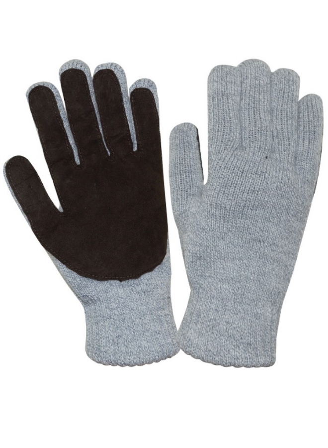 Кожевенный спилок на ладонной части. Верх из ПАН (полиакрилонитрил) пряжи. Подкладка – шерстяная пряжа.