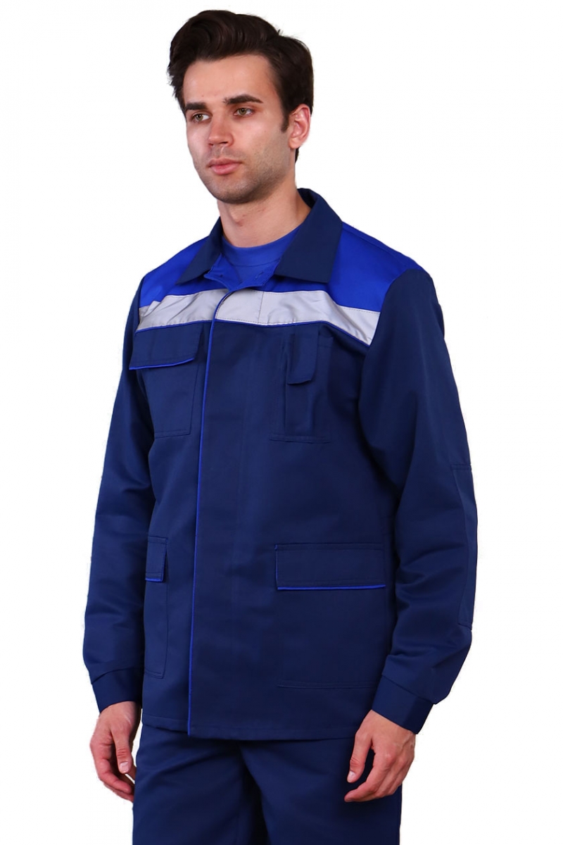 Рукава с усилением на уровне локтя, с манжетами, застегивающимися на пуговицы. В области подмышечных впадин вентиляционные отверстия. По шву притачивания кокетки СОП 50 мм.