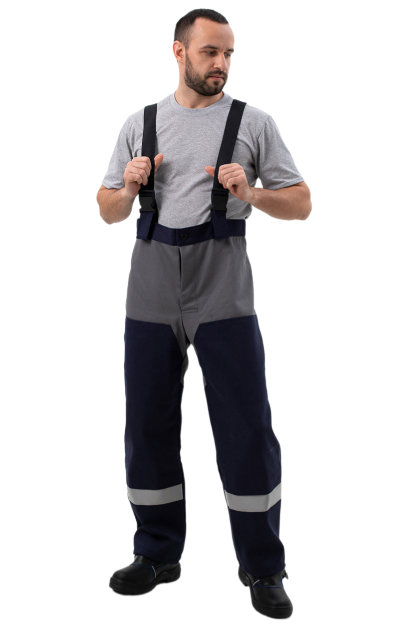 Детали костюма, расположенные в местах, установленных ГОСТом для защитных накладок, и подтвержденные самом высоким рискам прожигания, выполнены из огнестойкой ткани.